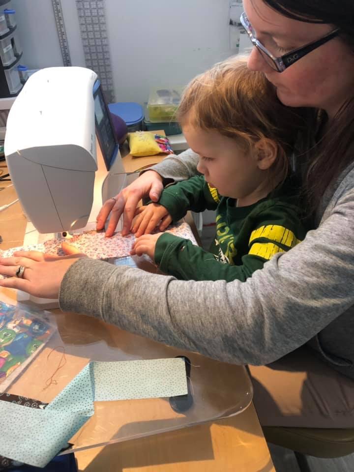 *If sewing with kids, have them help feed the sewing machine, or line up the fabric. If they’re a bit older (4/5) they can even help cut or stitch it themselves. Have fun!