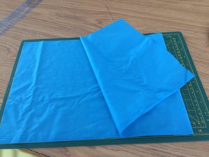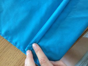 Step 1: Fold your fabric to either the width (9”) or the height (12”) with the finished side IN.