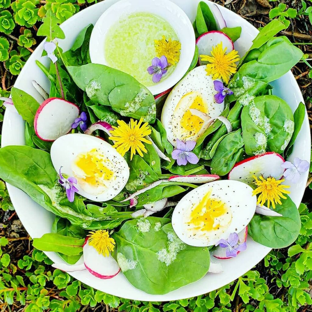 Blend until smooth and pour over your favourite foraged salad greens.
